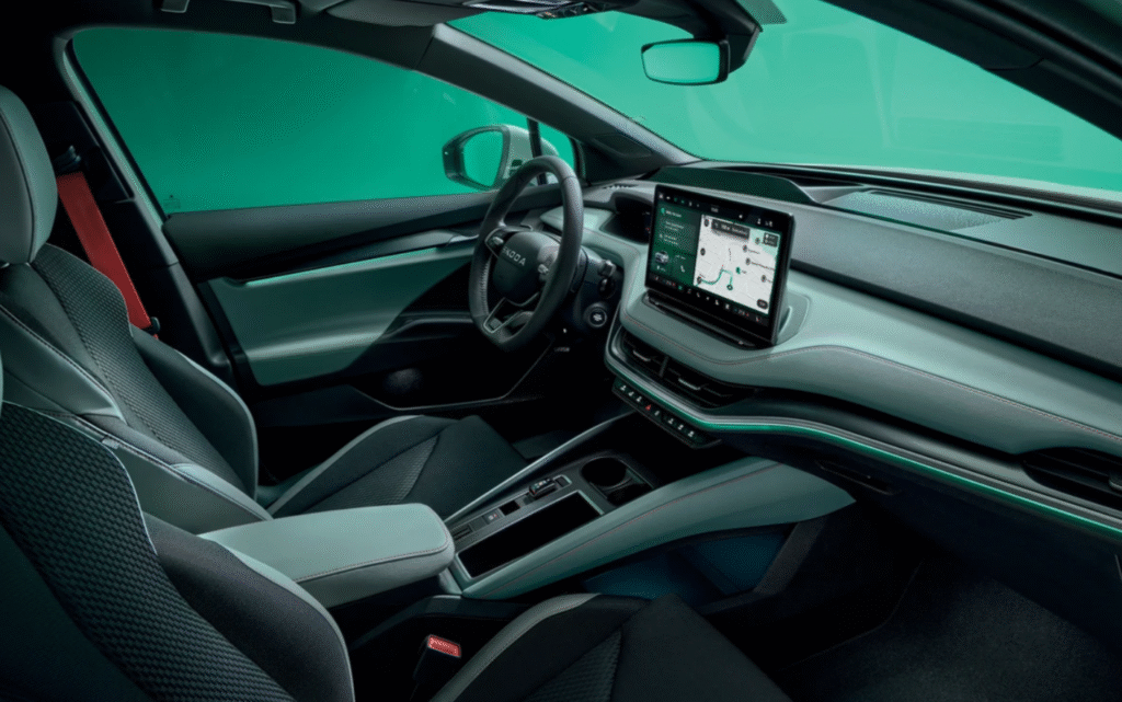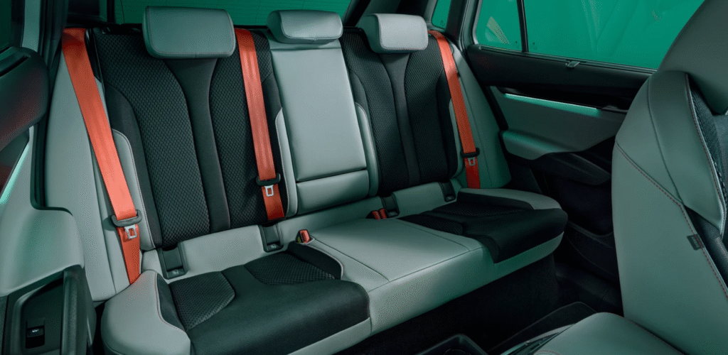 Step inside, and you immediately feel that Skoda focus on quality. The interior layout is minimalist, premium, and designed for everyday practicality. The front seats are wide, comfortable, and supportive, while the rear offers ample knee and headroom even for taller passengers.