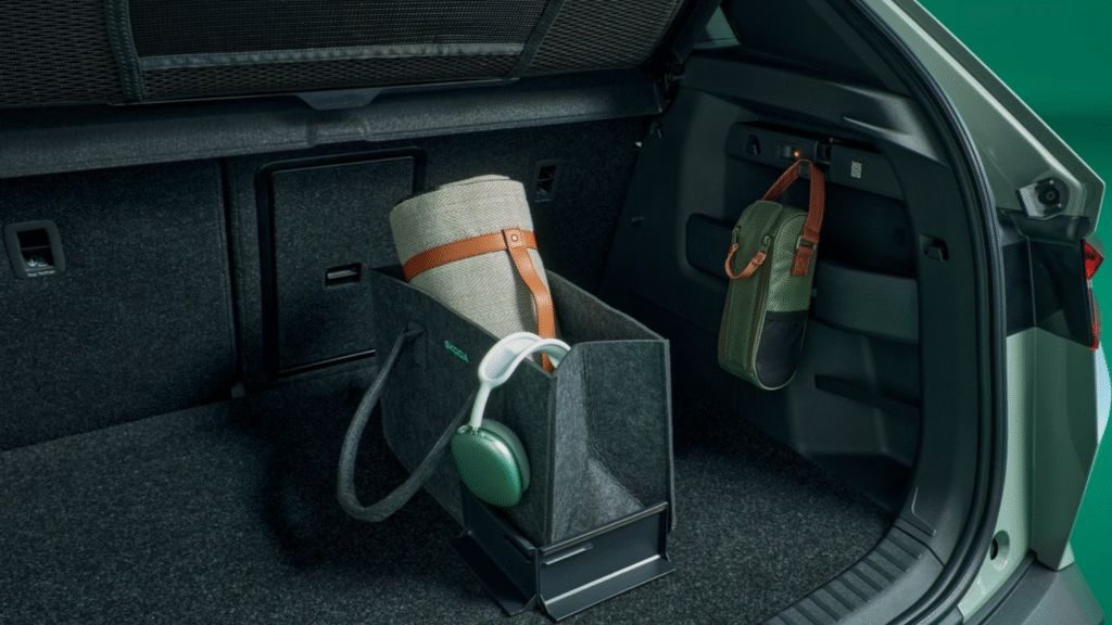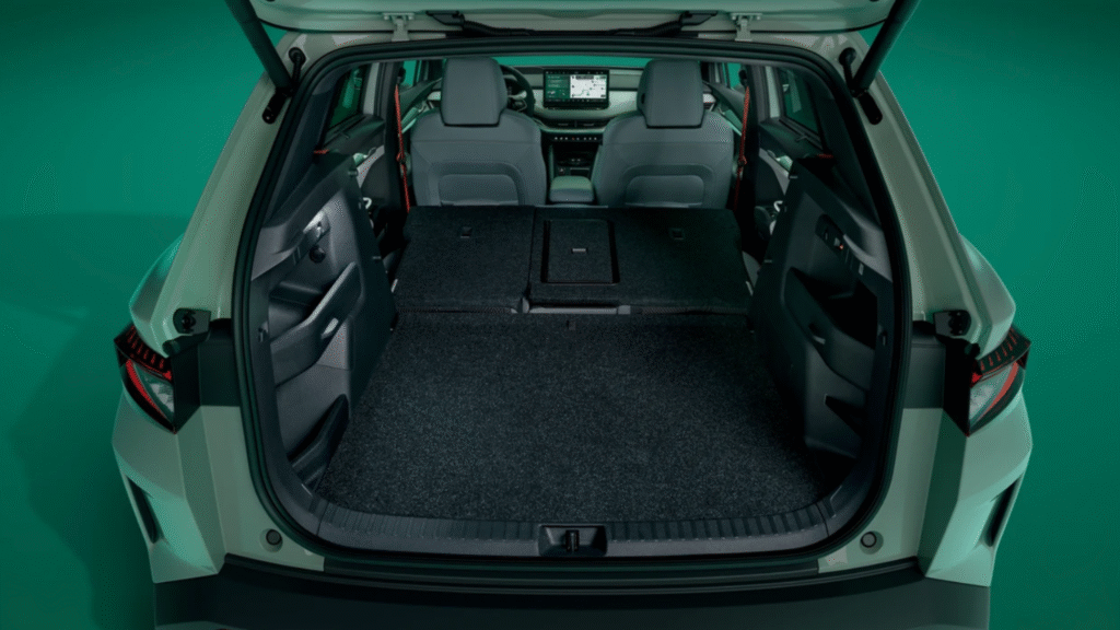 Boot space is a generous 470 litres, and in true Skoda fashion, you’ll find several Simply Clever touches — like a small net compartment for storing the charging cable, freeing up space below for luggage. It’s a small but thoughtful detail that Indian car buyers will surely appreciate.