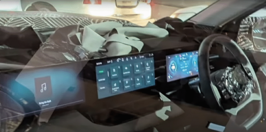 The cabin is dominated by three digital screens, making it one of the most tech-advanced interiors in its class.