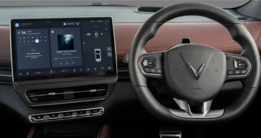 The VF7 cabin follows a clean, modern design approach—but stops short of extreme minimalism.