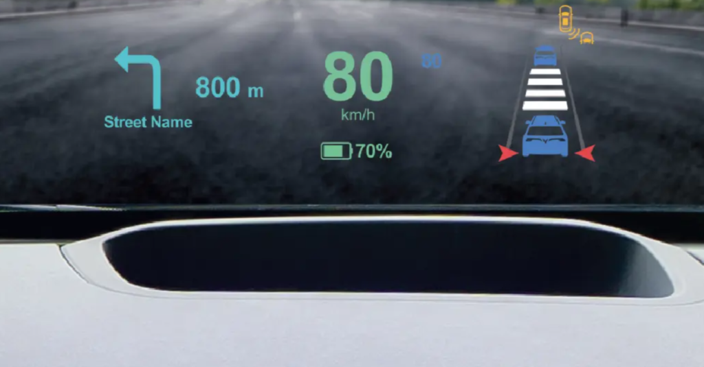 There is no traditional instrument cluster. Speed, range, and vehicle data are shown via: